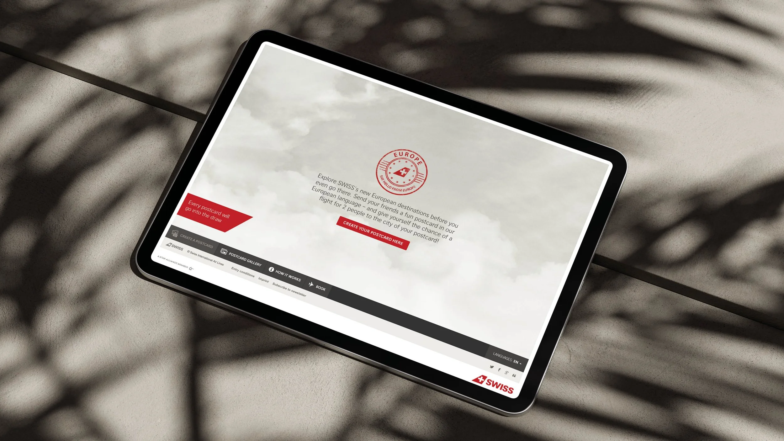 SWISS International Air Lines commissioned us to promote 34 new destinations in Europe. In response, we developed a Web-App called “Say Hello from Europe” that allowed users to explore these new destinations virtually and gain travel inspirations. Additionally, users could create personalized postcards and share them with friends on social media platforms.